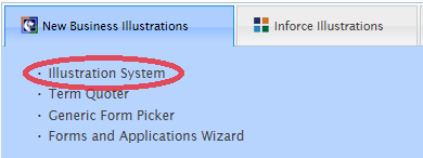 Once you have logged in, click on 'Illustration System' within the 'New Business Illustrations' tab.
